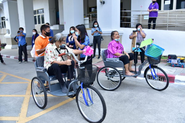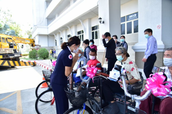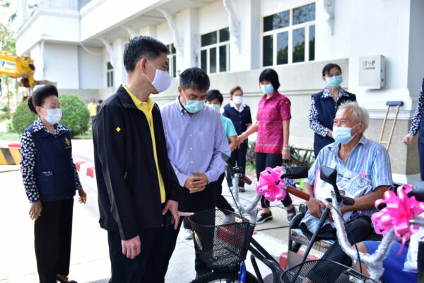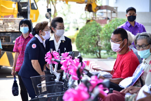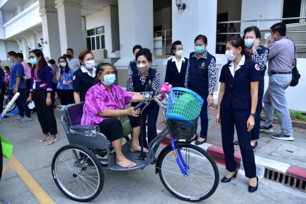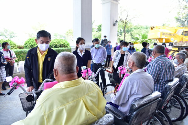 ผู้ว่าราชกาจังหวัดนครปฐม พร้อมด้วยนายกเหล่ากาชาด มอบรถสามล้อชนิดมือโยกสำหรับคนพิการ พร้อมเงินสงเคราะห์ ถุงยังชีพ และสิ่งของจำเป็น เพื่อช่วยเหลือให้คนพิการนำไปใช้ประโยชน์ในการดำรงชีวิต