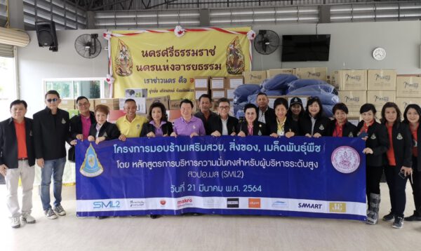 พลเอก ธิวา เพ็ญเขตกรณ์ ผู้อำนวยการหลักสูตรการบริหารความมั่นคงสำหรับผู้บริหารระดับสูง SML และคณะนักศึกษาหลักสูตรการบริหารความมั่นคงสำหรับผู้บริหารระดับสูง สวปอ.มส.SML รุ่นที่ 2 นำโดย นายบัณฑิต สะเพียรชัย กรรมการผู้จัดการใหญ่บริษัท บีซีพีจี จำกัด (มหาชน) ในฐานะประธานนักศึกษาฯ ร่วมมอบเครื่องอุปโภคบริโภคที่จำเป็นต่อการดำรงชีวิต มูลค่ากว่าหนึ่งล้านบาท ให้แก่ สถานคุ้มครองคนไร้ที่พึ่งภาคใต้ บ้านสิชล จังหวัดนครศรีธรรมราช และมอบห้องเสริมสวย SML2 Salon ให้กับสมาชิกบ้านสิชล พร้อมหลักสูตรอบรมวิชาชีพช่างผม โดยครูช่างผมจากชลาชลกรุ๊ปเพื่อให้สมาชิกบ้านสิชลมีองค์ความรู้สามารถนำไปประกอบอาชีพ และพึ่งพาตนเองได้