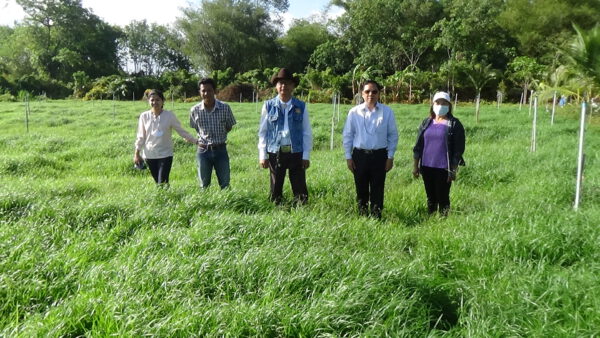 ที่หมู่ที่ 5 ตำบลนาหมื่นศรี อำเภอนาโยง จังหวัดตรัง นายวสันต์ สุขสุวรรณ เกษตรจังหวัดตรัง ลงพื้นที่และกล่าวว่าจังหวัดตรังพื้นที่ส่วนใหญ่ยางพารา ปาล์มน้ำมัน ช่วงหนึ่งเกษตรกรราคาไม่ดีจะมีผลกระทบต่อรายได้ของพี่น้องเกษตรกร ทางเกษตรได้แนะนำส่งเสริมเพิ่มพูนผลผลิต และพยายามให้ความรู้ เอาตัวอย่างดี ๆ ของเกษตรกรที่อื่นมาบอกกล่าวให้พี่น้องได้มีอาชีพเสริม โดยเฉพาะในช่วงแล้ง ช่วงโควิด ให้มีรายได้เช่นภายนอกในเขตพื้นที่อาจจะส่งเสริมการปลูกผักทอง เพื่อให้พี่น้องได้มีรายได้ช่วงสั้นๆ ในเวลานี้ หลายพื้นที่อาจจะมีการปลูกฝรั่ง เป็นรายได้เสริม ถ้าคิดกันต่อไร่ผลตอบแทนค่อนข้างจะสูงกกว่ายางพารา แม้กระทั่งเรื่องของการปลูกสละพันธุ์สุมาลีที่อำเภอย่านตาขาว เขาปลูกแค่ 17 ต้น สามารถมีรายได้ปีละ 6-7 หมื่นบาท เมื่อเปรียบเทียบกับยางพาราแล้วเป็นรายได้เสริมของพี่น้อง ในส่วนอื่น ๆ เช่นการปลูกหญ้า จะรู้ว่าภาคใต้บ้านเรานครศรีธรรมราช พัทลุง ตรัง ศิลปวัฒนธรรมประจำถิ่นก็คือเรื่องการเลี้ยงวัวชน นักกีฬามวยวัวชนก็ต้องใช้แปลงหญ้า โดยเฉพาะแปลงนี้ทำมาร่วม 10 ปี เป็นอาชีพเสริมให้กับพี่น้องเกษตรกรได้อย่างดี ทำน้อยแต่ได้มาก ก็ถือว่าเป็นตัวอย่างหนึ่งของเกษตรกรที่มีอาชีพหลากหลาย ไม่ทำอาชีพเชิงเดี่ยว ไม่ใช่ทำยางอย่างเดียว ไม่ใช่ทำปาล์มอย่างเดียว เวลาพืชราคาตกต่ำพี่น้องเราก็เหนื่อยหน่อย แต่ว่าถ้าทำหลากหลายยามใดที่สินค้าตัวใดตัวหนึ่งตกต่ำยังมีตัวอื่นมาจุนเจือ มีรายได้รายวัน รายเดือน รายปีไป