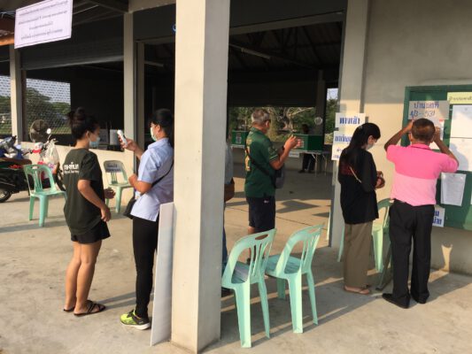 ที่อาคารงานป้องกันและบรรเทาสาธารณภัย เทศบาลตำบลเขาพระ อ.เดิมบางนางบวช จ.สุพรรณบุรี มีประชาชนออกมาใช้สิทธิเลือกตั้งนายกเทศมนตรีและสมาชิกสภาเทศมนตรี อย่างต่อเนื่อง