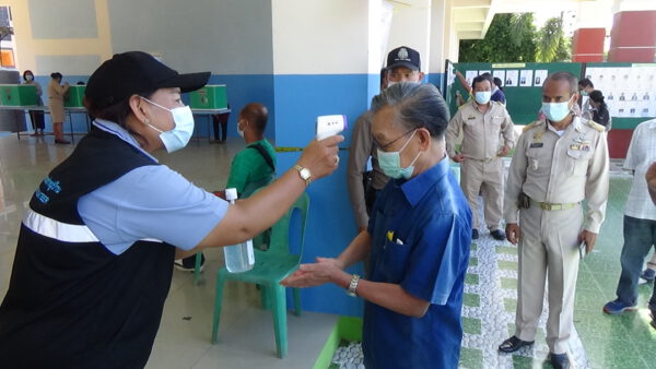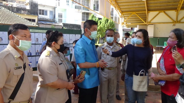 นายขจรศักดิ์ เจริญโสภา ผู้ว่าราชการจังหวัดตรัง กล่าวว่า วันนี้ได้มาตรวจเยี่ยมหน่วยเลือกตั้งในเขตเทศบาลนครตรัง ซึ่งมีหน่วยเลือกตั้งทั้งหมด 234 หน่วยเลือกตั้ง โดยเริ่มเปิดหน่วยเลือกตั้งตั้งแต่ 08.00 น. ในเรื่องของเจ้าหน้าที่ เจ้าหน้าที่ที่เป็นคณะกรรมการ เจ้าหน้าที่รักษาความปลอดภัยได้มีความพร้อมทุกหน่วย ในช่วงเช้าค่อนข้างคึกคักพอสมควรในพื้นที่ของตรัง หน่วยที่มาตรวจเยี่ยมสวนทับเที่ยงแห่งนี้มีพี่น้องประชาชนมาลงคะแนนประมาณ 20% ซึ่งหน่วยนี้มีผู้มีสิทธิ์ 500 กว่าคน ในภาพรวมที่ผ่านมาในการเตรียมของการซักซ้อมอบรมเจ้าหน้าที่ก็ได้ซักซ้อมเจ้าหน้าที่ทุกหน่วยในเรื่องของการปฏิบัติหน้าที่ให้เป็นไปตามขั้นตอน ซึ่งในส่วนของห้วงเวลาจนถึงการปิดหีบการเลือกตั้งในเวลา 17.00 น. หลังจากนั้นจะเป็นเรื่องของการนับคะแนน เรื่องของแสงสว่าง เรื่องของอุปกรณ์ที่จะเตรียมสำรองไว้หลังจากที่พี่น้องประชาชนมาลงคะแนนได้เตรียมความพร้อม ซึ่งได้ย้ำทางการไฟฟ้าส่วนภูมิภาคให้เตรียมเจ้าหน้าที่คอยรับแจ้งเหตุกรณีมีไฟฟ้าดับ ซึ่งเป็นสิ่งสำคัญที่ได้เตรียมการ โดยสรุปในภาพรวมทุกหน่วยมีความพร้อมและมีเจ้าหน้าที่คอยแก้ปัญหาอยู่ตลอดเวลา ซึ่งคิดว่าผลการนับคะแนนคาดว่าในเบื้องต้นเสร็จประมาณ 20.00 น. ของนายกเทศมนตรี ส่วนของสมาชิกสภาเทศบาลนครตรัง ประมาณ 22.00 น. ในภาพรวมของการร้องเรียนขณะนี้ของตรังไม่มีเหตุในการร้องเรียน ไม่มีการทำลายป้าย ในภาพรวมสถานการณ์ของการที่ทำผิดขั้นตอนกฎหมายการเลือกตั้งยังไม่ได้รับรายงาน ในเรื่องของมาตรการโควิด ได้มีการจัดเจ้าหน้าที่ทุกหน่วย มี อสม.อยู่หน้าคูหาในการตรวจวัดอุณหภูมิพี่น้องประชาชนที่จะเข้ามาลงคะแนน ทั้งนี้ขอความกรุณาพี่น้องประชาชนได้สวมแมส เข้ามาในเรื่องของการลงคะแนนเสียงเลือกตั้ง และมีการตรวจวัดอุณหภูมิ มีเจลแอลกอฮอล์ สำหรับพี่น้องประชาชนที่ลืมทางเทศบาลได้จัดแมสสำรองไว้ให้เรียบร้อยแล้ว ซึ่งคิดว่าทุกหน่วยต้องถือปฏิบัติในการป้องกันโควิด ตอนนี้เรายังรณรงค์ป้องกันโควิดอยู่