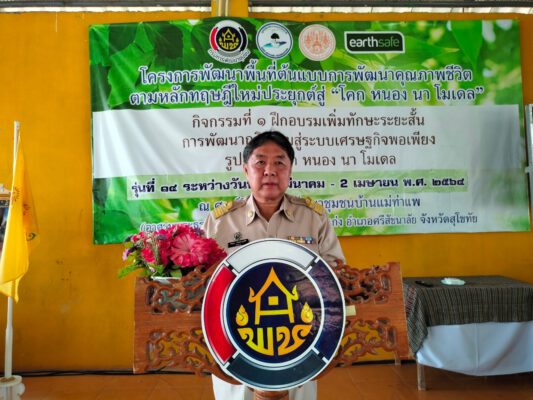 นายปริญญา ตังคณานุกูลชัย ปลัดอาวุโสอำเภอเมืองสุโขทัย กล่าวว่า จังหวัดสุโขทัยขับเคลื่อนโครงการพัฒนาพื้นที่ต้นแบบการพัฒนาคุณภาพชีวิตตามหลักทฤษฎีใหม่ประยุกต์สู่ “โคก หนอง นา พช.” กิจกรรมที่ 1 ฝึกอบรมเพิ่มทักษะระยะสั้นการพัฒนากสิกรรมสู่ระบบเศรษฐกิจพอเพียง รูปแบบ โคก หนอง นา พช. ณ ปัจจุบันเป็นรุ่นที่ 14 อบรม ณ ศูนย์ศึกษาการพัฒนาชุมชน(อาศรมพระธรรมจาริก) โดยมีกลุ่มเป้าหมายสำคัญ 2 กลุ่ม ประกอบด้วย นักพัฒนาพื้นที่ต้นแบบ (นพต.) และครัวเรือนต้นแบบการพัฒนาคุณภาพชีวิต สำหรับการฝึกอบรมทั้ง 5 วัน 4คืน มุ่งหวังให้กลุ่มเป้าหมายทั้ง 119 คน ได้เรียนรู้การน้อมนำหลักปรัชญาของเศรษฐกิจพอเพียงประยุกต์สู่การปฏิบัติในรูปแบบ”โคก หนอง นา พช.” ด้วยความเข้าใจอย่างแท้จริงและปฏิบัติได้จริง สามารถนำองค์ความรู้ที่ได้รับไปพัฒนาพื้นที่ของตนเอง และชุมชนตามหลักปรัชญาของเศรษฐกิจพอเพียง โดยเชื่อมั่นว่าการน้อมนำพระราชดำริของพระบาทสมเด็จพระบรมชนกาธิเบศร มหาภูมิพลอดุลยเดชมหาราช บรมนาถบพิตร ที่ทรงพระราชทานหลักปรัชญาของเศรษฐกิจพอเพียงและทฤษฎีใหม่ จะเป็นหลักยึดในการดำเนินชีวิตและรอดพ้นวิกฤตปัญหาเศรษฐกิจในปัจจุบันจากผลกระทบสถานการณ์การแพร่ระบาดของเชื้อไวรัสโคโรนา 2019 (COVID-19) ได้และที่สำคัญที่จะทำให้ให้ชุมชนเกิดการพัฒนาอย่างแท้จริงนำไปสู่ ความมั่นคง มั่งคั่ง และยั่งยืนในชุมชน