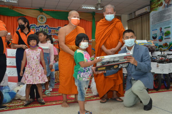 พระครูอนุกูลศาสนกิจกล่าวให้โอวาทกับเด็กๆทุกคนให้รักพ่อแม่และเป็นคนดีของสังคม ยึดคำสอนของพ่อแม่และคุณครู ที่สำคัญต้องมีคุณธรรม จะได้เติบโตมีอนาคต ภายในงานมีการเลี้ยงอาหารกลางวันให้กับนักเรียนที่มาร่วมงาน ซึ่งอาหารที่นำมาเลี้ยงในวันนี้ มีหลากหลายเช่นสเต๊ก ขนมจีนน้ำยา ขนม อาหารญี่ปุ่น ที่ส่วนใหญ่เป็นลูกศิษย์ของพระครูอนุกูลศาสนกิจ นำมาร่วมโดยไม่คิดค่าใช้จ่าย ถือเป็นการทำบุญ ภายหลังจากการแจกของขวัญให้กับนักเรียนจำนวน 163 คนที่ส่วนใหญ่เป็นจักรยานและของขวัญมากมาย