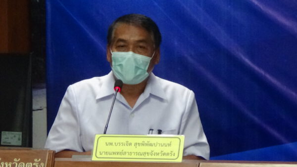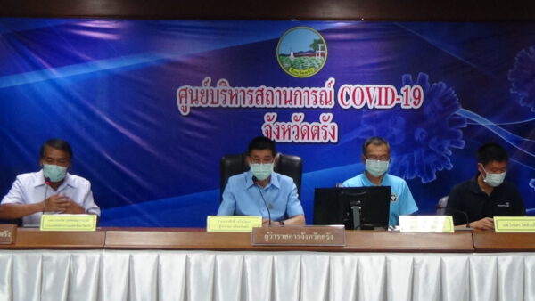 ผู้ว่าราชการจังหวัดตรังแถลงพบผู้ติดเชื้อเพิ่ม 4 ราย เตรียมคุมเข้มมาตรการการแพร่ระบาดของโรคติดเชื้อไวรัสโคโรนา 2019 ร้อยละ 90 ของผู้ติดเชื้อเดินทางมาจากพื้นที่เสี่ยง รวมขณะนี้จำนวน 12 รายในพื้นที่จังหวัดตรัง