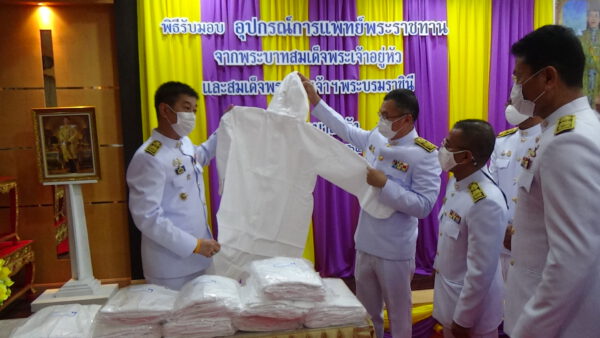 พระบาทสมเด็จพระเจ้าอยู่หัว และสมเด็จพระนางเจ้าฯ พระบรมราชินี ทรงพระกรุณาโปรดเกล้าโปรดกระหม่อมพระราชทานอุปกรณ์ทางการแพทย์ให้แก่หน่วยงานในสังกัดกระทรวงสาธารณสุขและหน่วยบริการทางการแพทย์นอกสังกัดกระทรวงสาธารณสุข เพื่อบรรเทาปัญหาการขาดแคลนอุปกรณ์ทางการแพทย์เพิ่มศักยภาพ และประสิทธิภาพในการดูแลรักษาผู้ป่วยโรคติดเชื้อไวรัสโคโรนา 2019 โดยมี นายอนุทิศ ชาญวีรกูล รองนายกรัฐมนตรีและรัฐมนตรีว่าการกระทรวงสาธารณสุข นายแพทย์เกียรติภูมิ วงศ์รจิต ปลัดกระทรวงสาธารณสุข พร้อมคณะผู้บริหารกระทรวงสาธารณสุข เข้ารับมอบอุปกรณ์ทางการแพทย์พระราชทานจากพระบาทสมเด็จพระเจ้าอยู่หัว และสมเด็จพระนางเจ้าฯ พระบรมราชินี ในวันอังคารที่ 19 มกราคม 2564 ที่ผ่านมา ณ อาคารกองกิจการในพระองค์ (สำนกงานราชเลขานุการในพระองค์) พระที่นั่งอัมพรสถาน ซึ่งกระทรวงสาธารณสุขได้ส่งมอบอุปกรณ์ทางการแพทย์ให้กับโรงพยาบาลตรัง จำนวน 3 รายการ ดังนี้ Isolation Gown จำนวน 1,500 ชุด Coverall Gown จำนวน 500 ชุด และ Reusable Isolation Gown จำนวน 1,500 ชุด
