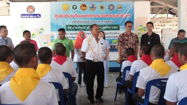 ด้านนายสมหวัง เรืองเพ็ง ปลัดจังหวัดนราธิวาส กล่าวว่า ศูนย์อำนวยการป้องกันและปราบปรามยาเสพติดจังหวัดนราธิวาส ได้กำหนดโครงการปรับเปลี่ยนพฤติกรรมผู้เสพยาเสพติดจังหวัดนราธิวาส ประจำปีงบประมาณ 2561 รุ่นที่7 ในหลักสูตร 15 วัน และหลักสูตร 3 วิ คือ วินัย วิชาการ วิชาชีพ ระหว่างวันที่ 20 เมษายน- 3 พฤษภาคม 2561 โดยเป้าหมายเป็นกลุ่มผู้ติดยาเสพติดที่ได้ผ่านการคัดกรอง จากศูนย์เพื่อการคัดกรองฯอำเภอ และสมัครใจเข้ารับการบำบัดฟื้นฟู ตามแนวทางคณะรักษาความสงบแห่งชาติ 108/2557 โดยมีผู้เข้าร่วมโครงการจาก 11 อำเภอของจังหวัดนราธิวาส เข้าร่วมโครงการทั้งสิ้น 118 คน