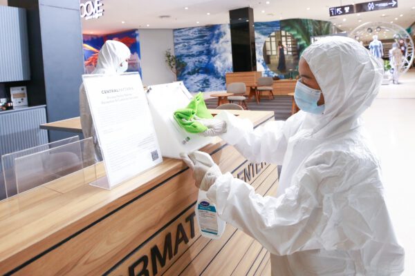 • ทันที – ปฏิบัติการ Extra deep cleaning ทั่วทั้งศูนย์การค้า ด้วยน้ำยาฆ่าเชื้อพิเศษแบบเข้มข้น ซึ่งเป็นหนึ่งในน้ำยาเคมีภันฑ์ไม่กี่ชนิด ที่ได้รับการรับรองจากสถาบันระดับโลก CBC approved (Center for Biocide Chemistries) สามารถฆ่าเชื้อ COVID-19 ได้ และรับรองโดยหน่วยงานคุ้มครองสิ่งแวดล้อมของสหรัฐอเมริกา (Environmental Protection Agency – EPA) มีคุณสมบัติเป็น Food Grade ที่ใช้ในอุตสาหกรรมอาหาร โดยเป็นผู้ผลิตเคมีภัณฑ์มาตรฐานระดับโลกที่ได้รับการยอมรับในอุตสาหกรรมอาหารทั่วโลก พร้อมมีมาตรการกักตัวผู้เกี่ยวข้องที่ชัดเจน นอกจากนี้ ร้านอาหารทุกร้านจะต้องทำความสะอาดโต๊ะทันทีภายใน 5 นาที ด้วยน้ำยาฆ่าเชื้อหลังลูกค้าใช้บริการเรียบร้อยแล้ว