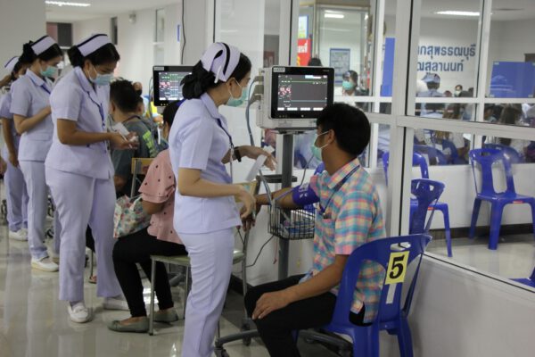 โดย นายแพทย์จิรภัทร กัลยาณพจน์พร รองผู้อำนวยการฝ่ายการแพทย์ โรงพยาบาลเจ้าพระยายมราช กล่าวว่า ก่อนฉีดวัคซีนต้องมีการคัดกรอง เช่น มีโรคประจำตัว มีอาการแพ้ยาหรือไม่ ถ้าผ่านเกณฑ์ก็รับบริการฉีดวัคซีนได้ เมื่อฉีดแล้วมีจุดนั่งพักนาน 30 นาที เพื่อดูอาการข้างเคียง แต่ถ้าไม่ผ่านเกณฑ์ก็จะไม่ได้ฉีดวัคซีน