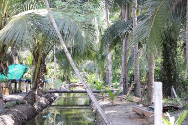 ผศ.พิเชษฐ์ โสวิทยสกุล กล่าวเสริมว่า “จังหวัดสมุทรสงคราม มีระบบนิเวศแบบ 3 น้ำคือ น้ำจืด น้ำกร่อย น้ำเค็ม และพื้นที่จังหวัดที่มีขนาดไม่ใหญ่นักเพียง 416.7 ตร.กม. โดยมีแม่น้ำแม่กลองเป็นแม่น้ำสายสำคัญ ลำคลองมากกว่า 360 ลำคลอง และมีลำประโดงกว่า 2,000 สายกระจายทั่วพื้นที่ ทำให้จังหวัดเป็นพื้นที่ที่มีความอุดมสมบูรณ์ต่อการผลิตพืชผักผลไม้และอาหารทะเล แต่ยังคงมีปัญหาเรื่องการจัดการคุณภาพน้ำในการทำการเกษตร การขับเคลื่อนโครงการพัฒนาพื้นที่ต้นแบบการพัฒนาคุณภาพชีวิตตามหลักทฤษฎีใหม่ประยุกต์สู่ “โคก หนอง นา พช.” สามารถบรรเทาปัญหาให้เบาบางลงได้ สิ่งหนึ่งคือการทำ “คลองไส้ไก่” นับเป็นตัวช่วยหนึ่งที่จะทำให้พื้นที่ทำกินมีความชุ่มชื้น ที่สำคัญยังเป็นการล็อกตะกอนดินที่เกิดจากการทับถมกันของใบไม้และอินทรีย์วัตถุต่าง ๆ อันอุดมไปด้วยธาตุอาหารที่จำเป็นแก่พืชเก็บน้ำฝนหล่อเลี้ยงดินและพืชผลตลอดทั้งปี บนคันดินก็ปลูกแฝกเพื่อลดการพังทลาย ตลอดจนปลูกพืช ผักสวนครัวสมุนไพร ไว้เป็นแหล่งอาหารได้อีกด้วย ฉะนั้นจึงแสดงให้เห็นว่าสิ่งที่เป็นจุดดีเด่นอยู่แล้วควรอนุรักษ์ไว้ และนำหลักการที่ดีมาปรับประยุกต์ให้ลงตัวโดยนำภูมิปัญญาดั้งเดิมมาผสานกับเทคนิคสมัยใหม่ ดังแนวพระราชดำริในการพัฒนาทุกเรื่อง ทรงแนะนำให้ผู้ดำเนินการพัฒนา ศึกษา เรียนรู้และทำความเข้าใจกับสภาพแวดล้อมและภูมิประเทศของท้องถิ่น รวมตลอดถึงวิถีชีวิต วัฒนธรรม และขนบธรรมเนียมประเพณีดั้งเดิมของท้องถิ่นเป็นหลัก ซึ่งก็คือการพัฒนาโดยยึดหลัก “ภูมิสังคม“