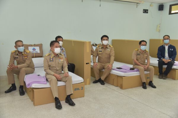 ที่ มหาวิทยาลัยราชภัฏเทพสตรี (ศูนย์การศึกษาอำเภอเดิมบางนางบวช ตำบลเขาพระ อำเภอเดิมบางนางบวช จังหวัดสุพรรณบุรี นายณัฐภัทร สุวรรณประทีป ผู้ว่าราชการจังหวัดสุพรรณบุรี พร้อมด้วย นายเอกภพ จันทร์เพ็ญ หัวหน้าสำนักงานป้องกันและบรรเทาสาธารณภัย จังหวัดสุพรรณบุรี และนายชาญยุทธิ์ นันทสุทธิวารี หัวหน้างานปฏิบัติการโครงการสุพรรณบุรี ปตท.สผ.ตรวจดูความเรียบร้อยการจัดตั้ง รพ.สนามแห่งแรกของจังหวัดสุพรรณบุรี