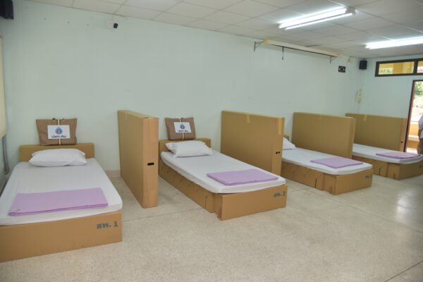 ดังนั้นจึงมีความจำเป็นที่ต้องจัดตั้งโรงพยาบาลสนามขึ้นเพื่อรองรับผู้ป่วยและผู้ที่เข้าข่ายเฝ้าระวัง ในการนี้ปตท.สผ.โครงการพีทีทีอีพี 1 มอบผ้าห่ม ผ้าปูที่นอน หมอน และ ปลอกหมอน จำนวน 100 ชุดแก่ โรงพยาบาลสนามแห่งแรกของจังหวัดสุพรรณบุรี โดย อบจ.เป็นผู้รับผิดชอบค่าใช้จ่ายอาทิ ค่าสาธารณูปโภค ค่าอาหาร ของโรงพยาบาลสนาม เป็นต้น นอกจากนี้ โรงเรียนกีฬาจังหวัดสุพรรณบุรี ยังได้สนับสนุนฟูกที่นอนอีกจำนวน 104 ผืนด้วย