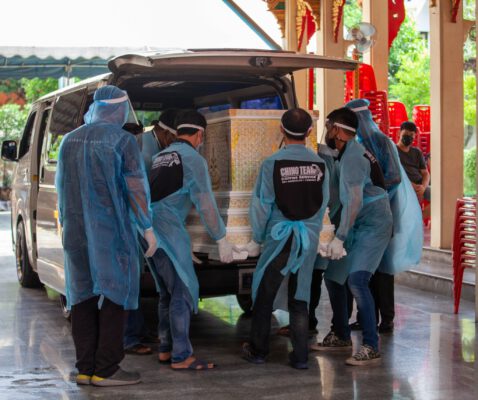 เมื่อวันที่ 27 เมษายน 2564 ที่ฌาปณสถานวัดไผ่ล้อม ต.พระปฐมเจดีย์ อ.เมือง จ.นครปฐม สืบเนื่องจาก เมื่อวันที่ 25 เมษายน 2564 ขณะ ร.ต.อ.หญิงพิชญพิมพ์ สุทธิวงศ์ รอง สว.(สอบสวน) สภ.เมืองนครปฐม ปฏิบัติหน้าที่พนักงานสอบสวนเวร ได้รับแจ้งเหตุ มีผู้เสียชีวิตที่ห้องฉุกเฉิน รพ.นครปฐม ดาบตำรวจรังสรรค์ อ่อนจ้อย อายุ 50 ปี ที่อยู่ 67 หมู่ที่ 2 ตำบลถนนขาด อำเภอเมืองนครปฐม จังหวัดนครปฐม เป็นเจ้าหน้าที่ตำรวจ สังกัด ศูนย์สืบสวนสอบสวนตำรวจภูธรภาค7 โดยรับตัวมาจากห้องพัก จังหวัดนครปฐม ส่งรพ.นครปฐม ด้วยอาการหมดสติ มีไข้ เมื่อเวลาประมาณ 15.45 น. และเสียชีวิตลงเมื่อเวลา 16.51 น. จากการตรวจสอบเบื้องต้น ทราบว่า ผู้เสียชีวิตไม่มีโรคประจำตัว ไม่มีประวัติการรักษาพยาบาลที่ รพ.นครปฐม แต่ผู้เสียชีวิต อยู่ระหว่างการกักตัวเพื่อตรวจหาเชื้อโควิด-19 ตั้งแต่วันที่ 17 เมษายน 2564 และมีอาการป่วย มีไข้สูง ทานอาหารได้น้อย ไอ มาโดยตลอดจนถึงก่อนเสียชีวิต ตรวจสอบเบื้องต้น ผู้เสียชีวิต ติดเชื้อโควิด-19 (ผลเป็นบวก) ติดเชื้อโควิด-19