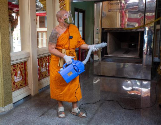 ซึ่งพระครูปลัดสิทธิวัฒน์ หลวงพี่น้ำฝน เจ้าอาวาสววัดไผ่ล้อม ได้กล่าวว่า การเผาศพโควิดศพนี้เป็นศพที่ 9 แล้ว การดำเนินการเผาศพโควิดของวัดไผ่ล้อม นั้นเน้นความปลอดภัย การพ่นยาฆ่าเชื้อ ใส่ชุดป้องกัน ตั้งก่อนที่รถขนศพจากโรงพยาบาลจะเข้ามา ก็จะมีการฉีดพ่นน้ำยาฆ่าเชื้อรอบบริเวณ และการตรวจวัดอุณหภูมิผู้เข้าร่วมพิธี นั่งเว้นระยะห่าง เพื่อสร้างความปลอดภัย เมื่อรถขนศพเข้ามาก็จะมีเจ้าหน้าที่ฉีดพ่นยาฆ่าเชื้อ และยกโลงศพขึ้นเตาเผาทันที โดยพระสงฆ์สี่รูปจะสวดมาติกา และมีการทอดผ้าบังสุกุล ที่บริเวณด้านล่างฌาปณสถาน โดยมีความปลอดภัยร้อยเปอร์เซ็น จึงอยากจะฝากพระคุณท่าน หลวงพี่ หลวงพ่อ หลวงปู่ เจ้าอาวาสวัดทุกวัดให้ช่วยญาติโยมสงเคราะห์ในการเผาศพผู้ติดเชื้อโควิด ไม่น่ากลัวอย่างที่คิด เชื้อโควิดจะติดจากทางเดินหายใจคนตายแล้วเชื้อก็ตายแล้ว เพียงแต่ป้องกันให้ถูกวิธีเท่านั้นเอง ซึ่งหากวัดใดต้องการให้วัดอาตมาช่วยเหลือยินดีที่จะไปเป็นพี่เลี้ยงให้ เพื่อช่วยเหลือญาติโยมต่อไป