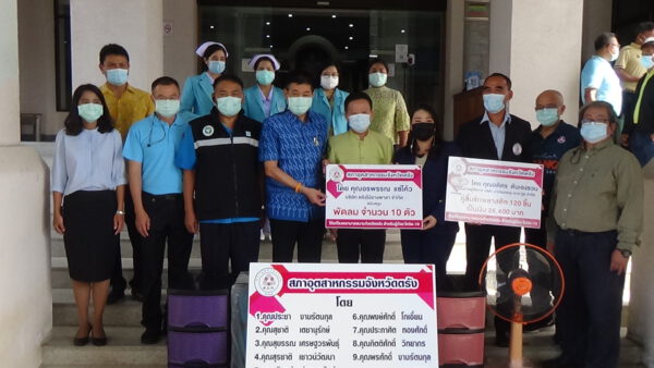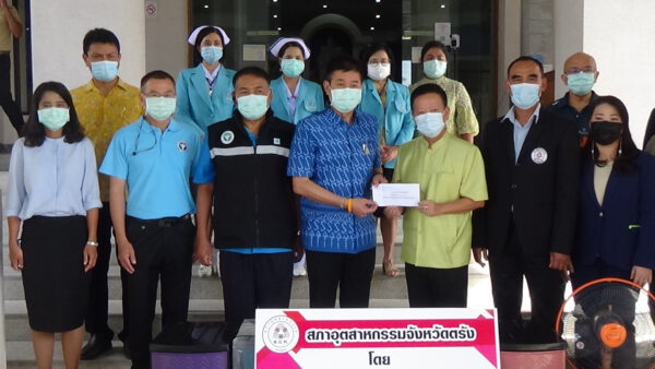 ที่บริเวณศาลากลางจังหวัดตรัง นายขจรศักดิ์ เจริญโสภา ผู้ว่าราชการจังหวัดตรัง เป็นประธานรับมอบอุปกรณ์โรงพยาบาลสนาม (ตู้พลาสติกแบบมีลิ้นชัก) จำนวน 120 ชิ้น พร้อมเงินสดจำนวน 30,000 บาท จาก นายประชา งามรัตนกุล ประธานสภาอุตสาหกรรมจังหวัดตรัง และสมาชิกสภาอุตสาหกรรม ในขณะที่ด่านศุลกากรกันตัง ร่วมมอบพัดลม เพื่อใช้ในโรงพยาบาลสนาม ณ บริเวณหน้าศาลากลางจังหวัดตรัง ทั้งนี้จังหวัดตรัง ได้จัดตั้งโรงพยาบาลสนาม 4 แห่ง กว่า 170 เตียงรองรับผู้ติดเชื้อโควิด -19 โดยหน่วยงานสาธารณสุขได้จัดทีมบุคลากรทางการแพทย์หมุนเวียนให้การดูแลตลอด 24 ชั่วโมง ทำให้ระบบการดูแลผู้ติดเชื้อสามารถเดินหน้าต่อไปได้ มีเตียงรองรับผู้ติดเชื้อทุกคน นอกจากนี้การที่ภาคเอกชนได้ให้การสนับสนุน วัสดุอุปกรณ์ที่จำเป็นต้องใช้ในโรงพยาบาลสนามในวันนี้ จะช่วยเพิ่มประสิทธิภาพระบบการป้องกันควบคุมโรค ด้าน นายประชา งามรัตนกุล ประธานสภาอุตสาหกรรมจังหวัดตรัง กล่าวว่า สภาอุตสาหกรรมจังหวัดตรัง ได้ให้ความสำคัญและดำเนินการดูแลช่วยเหลือสังคมทุกภาคส่วนมาโดยตลอด และยังคงมุ่งมั่นตั้งใจที่จะเป็นส่วนหนึ่งในการดูแลช่วยเหลือสังคมและทุกภาคส่วนต่อไป