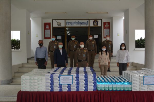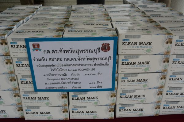 พลตำรวจตรีชมชวิณ ปุระธนานนท์ ผู้บังคับการตำรวจภูธรจังหวัดสุพรรณบุรี พร้อมด้วย พันตำรวจเอกพงษ์ศักดิ์ ชูนาค, พันตำรวจเอกเกรียงไกร วุฒิพานิช, พันตำรวจเอกมาโนชญ์ จิตรภักดี, พันตำรวจเอกสมภพ คูหาวิชานันท์, พันตำรวจเอกธนเดช ตันติอาภา, พันตำรวจเอกสมพร พุกหอม และข้าราชการตำรวจในสังกัดรับมอบเพื่อแจกจ่ายให้แก่ข้าราชการตำรวจในสังกัดตำรวจภูธรจังหวัดสุพรรณบุรีทุกนาย เพื่อใช้ในการปฏิบัติหน้าที่ ดูแลความสงบเรียบร้อยและอำนวยความยุติธรรมให้แก่ประชาชนได้อย่างปลอดภัยจากการแพร่ระบาดของโรคติดเชื้อไวรัสโคโรนา 2019 ต่อไป