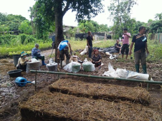 สำหรับกิจกรรมการเอามื้อสามัคคี ในวันนี้ เป็นการพัฒนา สร้างความรู้ ความเข้าใจ วิถีแห่งความพอเพียง ให้ประชาชนเกิดการยอมรับและน้อมนำไปปฏิบัติ ผลประโยชน์ที่จะเกิดขึ้นอย่างชัดเจน นั้น คือ การสร้างพลังแห่งความสมานสามัคคี เอื้ออาทรให้เกิดขึ้นในชุมชน ท้องถิ่น และการเพิ่มทักษะการดำเนินชีวิตในรูปแบบการเรียนรู้ผ่านการลงมือทำจริงทุกขั้นตอน โดยใช้กระบวนการ “ฐานคนหัวเห็ด” การเพาะเห็ดฟาง 2 รูปแบบ ประกอบด้วย 1) การเพาะเห็ดฟางแบบกองเตี้ย เพื่อจัดทำเป็นแปลงสาธิตภายในศูนย์เรียนรู้ทฤษฎีใหม่ รูปแบบ “โคก หนอง นา” ประชาชนในหมู่บ้านสามารถเข้ามาเรียนรู้ได้ ซึ่งการเพาะเห็ดฟางแบบกองเตี้ยเป็นวิธีที่ง่ายและได้รับความนิยมกันมาก เนื่องจากเป็นวิธีที่ ประหยัดวัสดุเพาะเห็ด ใช้ระยะเวลาเพาะสั้น จึงสามารถเพาะได้ทุกฤดูกาล ปกติแล้วเกษตรกรจะเพาะในฤดูหลังนา เพราะมีฟางข้าว และตอซัง เป็นวัสดุเพาะ เพื่อเป็นการเพิ่มมูลค่าวัสดุที่เหลือใช้จากครัวเรือนและการเกษตร มาให้เกิดประโยชน์เป็นการเพิ่มแหล่งอาหารและเพิ่มรายได้อีกทางหนึ่งด้วย และ 2) การเพาะเห็ดฟางในตะกร้า ที่เป็นรูปแบบการเพาะเห็ดฟางที่ประยุกต์ใช้ตะกร้าพลาสติกเป็นโครงสร้างของกองวัสดุเพาะ เหมาะสำหรับการเพาะเห็ดฟางในพื้นที่ที่จำกัด โดยเฉพาะผู้ที่ไม่มีแปลงไร่นา มีพื้นที่น้อย หรือผู้ที่อยู่ในชุมชนเมือง โดยผลงานความร่วมมือเพาะเห็ดฟางในรูปแบบที่ 2 นี้ จะมอบให้ครัวเรือนเป้าหมายที่เข้าร่วมโครงการ เป็นดังจุดเริ่มต้นเพื่อเป็นต้นแบบที่ดี สร้างความมั่นคงทางอาหาร สู้กับวิกฤตการณ์ การแพร่ระบาดของโรคติดเชื้อไวรัสโคโรนา 2019 (COVID-19) ระลอกใหม่ และขยายผลสู่ทุกครัวเรือนต่อไป”