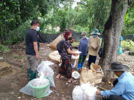 วันที่ 30 เมษายน 2564 นางพรทิพย์ สมโสภา พัฒนาการอำเภอเชียงดาว จังหวัดเชียงใหม่ มอบหมายให้ นางเพ็ญศิริ หวันน้อย นักวิชาการพัฒนาชุมชนชำนาญการ พัฒนากรผู้ประสานงานตำบลแม่นะ อำเภอเชียงดาว จัดกิจกรรมเอามื้อสามัคคี ฐานการเรียนรู้ “คนหัวเห็ด” ภายใต้โครงการพัฒนาหมู่บ้านเศรษฐกิจพอเพียง ปีงบประมาณ พ.ศ. 2564 โดยกิจกรรมในครั้งนี้เป็นการรวมกลุ่มของตัวแทนครัวเรือนพัฒนาในหมู่บ้านเศรษฐกิจพอเพียง จำนวน 15 คน ณ ศูนย์การเรียนรู้ชุมชนแปลงของ นายพิทักษ์ หน่อคำ หมู่ที่ 6 บ้านสบคาบ ตำบลแม่นะ อำเภอเชียงดาว จังหวัดเชียงใหม่