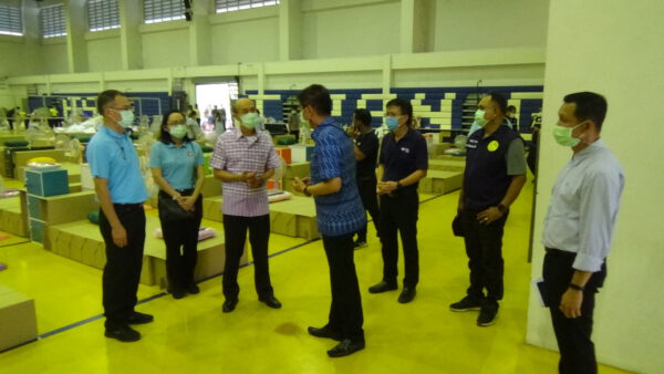 ที่อาคารยิมเนเซี่ยม มหาวิทยาลัยสงขลานครินทร์ วิทยาเขตตรัง นายขจรศักดิ์ เจริญโสภา ผู้วาราชการจังหวัดตรัง พร้อมเจ้าหน้าที่และรองศาสตราจารย์ ดร.อุดมผล พืชน์ไพบูลย์ รองอธิการบดีหาวิทยาลัยสงขลานครินทร์ วิทยาเขตตรัง ติดตามการดำเนินงานโรงพยาบาลสนามแห่งที่ 4 ที่ใช้อาคารยิมเนเซี่ยม มหาวิทยาลัยสงขลานครินทร์ วิทยาเขตตรัง สามารถรองรับได้ 160 เตียง ซึ่งในขณะที่ทาง SCG ได้มอบเตียงกระดาษให้เป็นที่เรียบร้อยแล้ว ซึ่งได้มีการจัดวางเตียง อุปกรณ์เครื่องใช้ต่างๆ ในขณะที่การไฟฟ้าส่วนภูมิภาคจังหวัดตรัง ได้เดินระบบไฟฟ้าภายในอาคาร มี ความคืบหน้าไปแล้วประมาณ 90 เปอร์เซ็นต์ คาดว่าจะสามารถใช้งานได้ภายในสัปดาห์หน้า โดยจะมีแบ่งระหว่างผู้ป่วยชายและผู้ป่วยหญิง การดำเนินงานโรงพยาบาลสนามแห่งที่ 4 นั้น ได้มีการระดมกำลังทั้งแพทย์ พยาบาล เจ้าหน้าที่การไฟฟ้าส่วนภูมิภาค เจ้าหน้าที่อาสาสมัครกู้ภัย นักศึกษามหาวิทยาลัยสงขลานครินทร์ วิทยาเขตตรัง