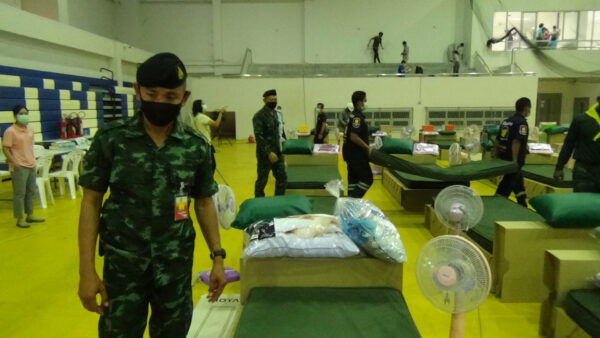 โรงพยาบาลสนามแห่งที่ 4 เกือบพร้อมแล้วที่จะรับผู้ป่วยโควิด -19 ในขณะที่ทหารกองพันทหารราบที่ 4 กรมทหารราบที่ 15 ค่ายพระยารัษฎานุประดิษฐ์ อำเภอห้วยยอด จังหวัดตรัง นำที่นอน จำนวน 90 หลัง พร้อมเตียง 20 เตียง มาช่วยเหลือโรงพยาบาลสนาม