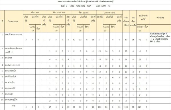 วันนี้ (3 พ.ค.64) คณะกรรมการโรคติดต่อจังหวัดสุพรรณบุรี เปิดเผยข้อมูล สถานการณ์การใช้เตียง รายงานสถานการณ์การใช้เตียงประจำวันที่ 2 พฤษภาคม 2564 เวลา 16:00 น จำนวนเตียงทั้งหมด 184 เตียง. มีผู้ป่วย covid -19. ทั้งหมด 129 คน คิดเป็นร้อยละ 70.11 ของ จำนวนเตียงทั้งหมดคงเหลือเตียงพร้อมให้บริการ 45 เตียง ( กรณีเฉพาะ isolate+cohort bed คงเหลือ 34 เตียง ส่วนของห้องAIIRและ modify AIIR เตรียมรองรับcase severe)