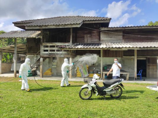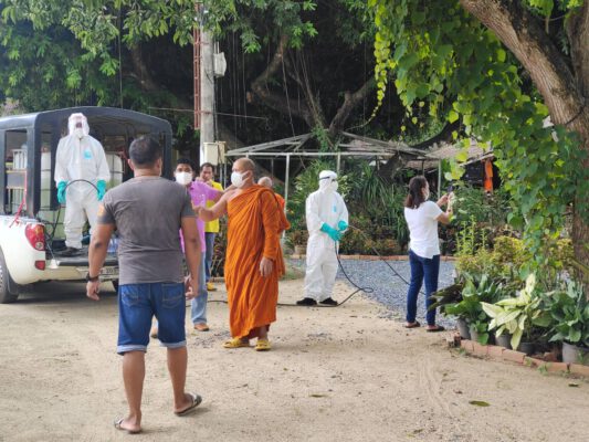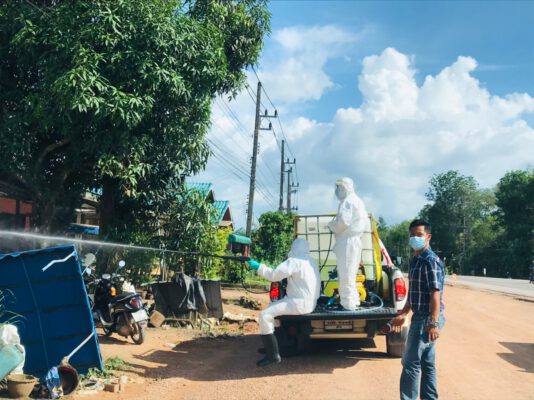 ซึ่งวันนี้ นายโชคดี คีรีกิ้น รองนายกองค์การบริหารส่วนจังหวัดตรัง พร้อมนายกิตติเดช วรรณบวร ประธานสภาองค์การบริหารส่วนจังหวัดตรัง ได้เยี่ยม ให้กำลังใจผู้นำท้องที่ ผู้นำท้องถิ่น ในพื้นที่อำเภอห้วยยอด และได้นำหน่วยเคลื่อนที่เร็ว เจ้าหน้าที่ฝ่ายสาธารณภัยและสิ่งแวดล้อม องค์การบริหารส่วนจังหวัดตรัง ฉีดพ่นยาฆ่าเชื้อโรคโควิด-19 บ้านเรือนผู้ติดเชื้อยืนยัน และผู้สัมผัสที่มีความเสี่ยงสูง รวมถึงแหล่งชุมชน ร้านค้า พื้นที่หมู่ที่ 12 ตำบลเขากอบ พื้นที่วัดทุ่งต่อ โรงปฏิบัติธรรม โรงเลี้ยงวัดทุ่งต่อ เพื่อสร้างความมั่นใจให้กับประชาชน
