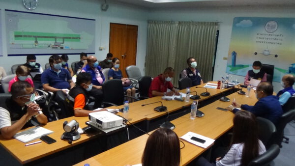 ที่ห้องประชุมท่าอากาศยานตรัง นายขจรศักดิ์ เจริญโสภา ผู้ว่าราชการจังหวัดตรัง พร้อมด้วย นายแพทย์บรรเจิด สุขพิพัฒปานนท์ นายแพทย์สาธารณสุขจังหวัดตรัง นายวิศิษฐ์ อนันต์วรปัญญา ปลัดจังหวัดตรัง พันจ่าเอก เมืองชล วงศ์สุวรรณ ผู้อำนวยการท่าอากาศยานตรัง นายวัลลภ ช่วยบำรุง ปลัดเทศบาล ปฏิบัติหน้าที่นายกเทศมนตรีนครตรัง และผู้ประกอบการสายการบิน เป็นประธานร่วมประชุมเพื่อติดตามการดำเนินมาตรการป้องกันและควบคุมการแพร่ระบาดของโรคติดเชื้อไวรัสโคโรนา 2019 ของท่าอากาศยานตรัง ตามคำสั่งจังหวัดตรัง ในการคัดกรองการเดินทางเข้า-ออกพื้นที่จังหวัด โดยผู้ว่าราชการจังหวัดตรังได้ขอความร่วมมือทุกสายการบิน ได้ชี้แจงข้อเท็จจริงเกี่ยวกับสถานการณ์การแพร่ระบาดของโรคโควิด-19 ของจังหวัดตรังให้กับผู้ที่ประสงค์จะเดินทางเข้ามาในพื้นที่จังหวัดตรังได้รับทราบ และจะต้องทำการกักตัวอย่างเข้มงวดตามคำสั่งเจ้าพนักงานควบคุมโรค