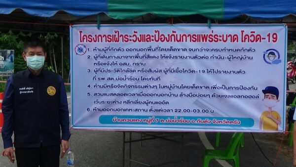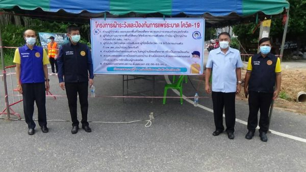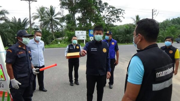 หลังจากนั้นนายขจรศักดิ์ เจริญโสภา ผู้ว่าราชการจังหวัดตรังและคณะ ได้ลงพื้นที่หมู่ที่ 7 ตำบลบ่อน้ำร้อน อำเภอกันตัง ที่มีการแพร่ระบาดของคลัสเตอร์งานแต่งงานในจุดแรก คือการตั้งขบวนขันหมากของเจ้าบ่าว ในหมู่ที่ 7 นั้น พบผู้ป่วยติดเชื้อโควิด -19 จำนวน 29 คน และกักตัวอยู่บ้านอีก 49 คน ทางนาบอำเภอกันตัง ได้ตั้งจุดตรวจจุดสกัดในการเข้าออกหมู่บ้าน ซึ่งมีเจ้าหน้าที่สาธารณสุข อสม.และฝ่ายปกครอง ประจำจุดตรวจ ในขณะที่จุดตรวจได้ขึ้นไวนิลประกาศคำสั่งจังหวัดตรัง หลายๆข้อ เพื่อให้ประชาชนปฏิบัติตามคำสั่ง และห้ามฝ่าฝืนโดยเด็ดขาด ทั้งนี้ผู้ว่าราชการจังหวัดตรัง ได้มอบหน้ากากอนามัย เจลล้างมือ ให้เจ้าหน้าที่ประขุดตรวจอีกด้วย และขอให้เพิ่มความระมัดระวัง ผู้ไม่มีส่วนห้ามเข้าในพื้นที่โดยเด็ดขาด