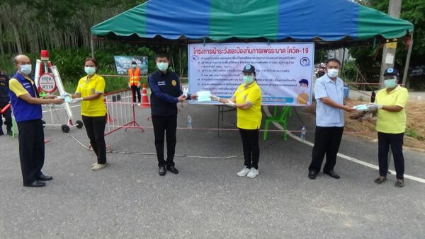 ที่ศาลประชาคมอำเภอกันตัง จังหวัดตรัง นายขจรศักดิ์ เจริญโสภา ผู้ว่าราชการจังหวัดตรัง พร้อมด้วยนายวิศิษฐ์ อนันต์วรปัญญา ปลัดจังหวัดตรัง นายแพทย์บรรเจิด สุขพิพัฒน์ ปานนท์ นายแพทย์สาธารณสุขจังหวัดตรัง และเหล่ากาชาดจังหวัดตรัง นำถุงยังชีพจากสภากาชาดไทย จำนวน 386 ชุด มอบให้กับผู้นำหมู่บ้านใน 14 ตำบลของอำเภอกันตัง เพื่อนำไปมอบให้กับประชาชน ที่ได้รับความเดือดร้อนจากการแพร่ระบาดโควิด -19 และประชาชนที่กักตัวเองอยู่ที่บ้าน ทางหน่วยงานของสภากาชาดไทย เหล่ากาชาดจังหวัดตรัง และจังหวัดตรัง ได้ห่วงใยประชาชนที่ได้รับความเดือดร้อนจากการแพร่ระบาดของโควิด-19 ซึ่งทางผู้ว่าราชการจังหวัดตรัง ได้มอบหน้ากากอนามัยและเจลล้างมือให้กับผู้นำชุมชน นำไปแจกให้กับชาวบ้านอีกด้วย พร้อมทั้งกล่าวขอความร่วมมือจากประชาชนทุกคนช่วยกันใส่หน้ากากอนามัยก่อนออกจากบ้านทุกครั้ง หรือแม้กระทั่งอยู่ในบ้านพักอาศัย หากรับประทานอาหารควรซื้อกลับไปรับประทานที่บ้าน ไม่ควรที่จะนั่งที่ร้าน อีกทั้งประชาชนที่กักตัวอยู่ที่บ้าน ก็ควรอยู่แต่ที่บ้านไม่สมควรที่จะเดินทางออกจากไปไหนมาไหน ระยะเวลา 14 วัน ขอให้ประชาชนอดทนร่วมกันฝ่าฟันการแพร่ระบาดของโควิด -19 ไปให้ได้ ในขณะที่ประชาชนที่เดินทางมาจากพื้นที่เสี่ยงสูงสุด หากเดินทางมาจังหวัดตรัง ต้องกักตัว 14 วัน สถานการณ์การแพร่ระบาดของจังหวัดตรังเริ่มดีขึ้น เนื่องจากทีมงานสาธารณสุขทั้งจังหวัดตรัง ได้ติดตามกลุ่มผู้ที่เข้าข่ายกับการแพร่ระบาดมาตรวจหาเชื้อ และสามารถกำจัดวงได้แล้ว