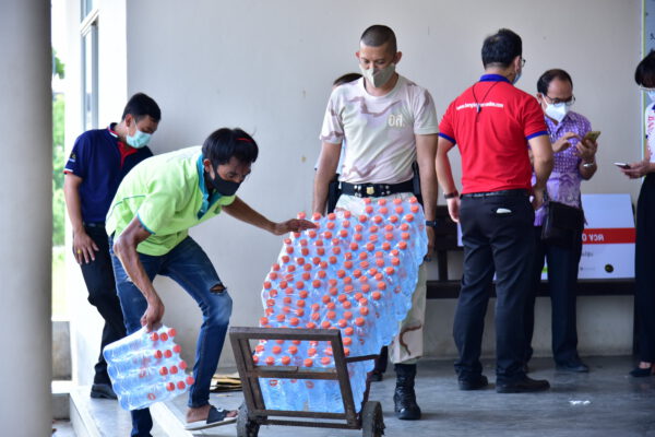 ในส่วนการรับริจาคสิ่งของมีการจัดตั้งอย่างเป็นระบบ โดยทางจังหวัดนครปฐมเป็นผู้บริหารจัดการ มีการกำหนดสิ่งของว่าต้องการอะไร เพื่อให้การบริจาคเป็นไปตามวัตถุประสงค์และนำไปใช้ประโยชน์สูงสุด