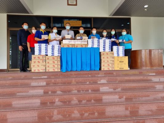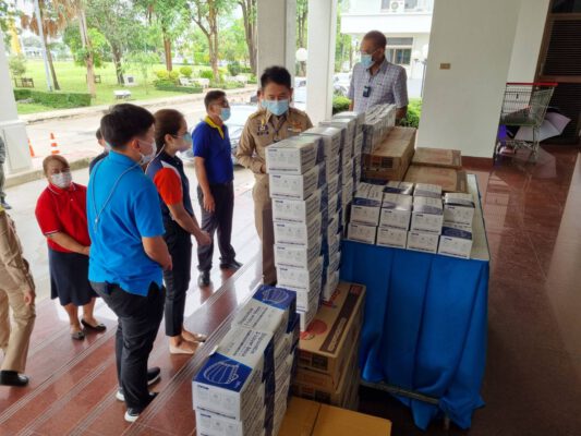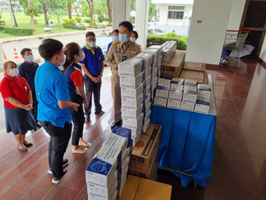 วันนี้(6 พ.ค.64)ที่บริเวณหน้ามุข ศาลากลาง จ.สุพรรณบุรี นายณัฐภัทร สุวรรณประทีป ผู้ว่าราชการ จ.สุพรรณบุรี พร้อมด้วย นายปรีชา ทองคำ รองผู้ว่าราชการจังหวัดสุพรรณบุรี รับมอบหน้ากากอนามัย 100 กล่อง รวม 5,000 ชิ้นและนมกล่อง 960 กล่อง จากผู้แทนบริษัทดัชมิลล์ เพื่อส่งต่อให้ผู้ที่ถูกกักกันดูอาการ ที่สถานที่กักกันดูอาการ (Locai Quarantine) อ.ดอนเจดีย์ และ รพ.สนาม อ.เดิมบางนางบวช