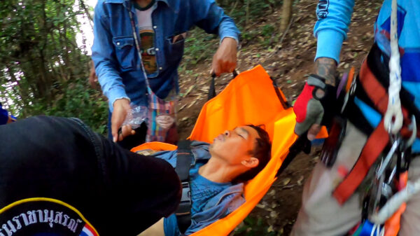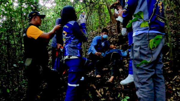 เมื่อถึงจุดเกิดเหตุผู้สูญหายมีร่างกายอิดโรยไม่ได้สติทางเจ้าหน้าที่ EMS บ้านบึง ได้ปฐมพยาบาล เบื้องต้นและได้ประสานทางศูนย์วิทยุ ว่าไม่สามารถนำสูญหาย กลับมาโดยใช้เส้นทางเดินเท้าได้เส้นทางในการเดินเท้าค่อนข้างจะลำบากเป็นอย่างมาก ทางศูนย์วิทยุได้ประสานกับเจ้าหน้าที่ฝ่ายปกครองเพื่อประสานเรือในพื้นที่ที่ใกล้ที่สุดเพื่อจะนำผู้ป่วยหรือผู้สูญหายใช้เส้นทางทางน้ำ ได้ประสานทางรถพยาบาล โรงพยาบาลบ้านคา เตรียมความพร้อมพร้อม เจ้าหน้าที่สแตนบายเพื่อที่จะลำเลียงผู้ป่วยไปที่โรงพยาบาลโดยเร็วที่สุด เจ้าหน้าที่ EMS บ้านบึง ไปนำผู้ป่วยขึ้นเรือลำเลียงทางน้ำเพื่อนำผู้ป่วยขึ้นรถพยาบาลบ้านคาเพื่อส่งโรงพยาบาลบ้านคาต่อไป