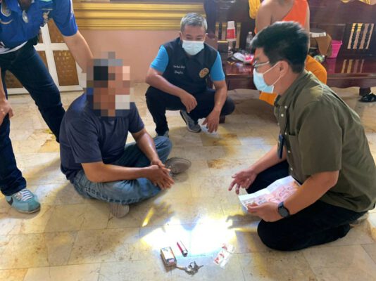 เมื่อเดินทางไปถึงที่เกิดเหตุตามที่ได้รับการร้องเรียน พบพระภิกษุจำนวน 4 รูป จับกลุ่มมั่วสุมเสพยาบ้า ชุดปฏิบัติการฯ จึงนิมนต์พระภิกษุทั้ง 4 รูป ไปดำเนินการลาสิขาบท จากนั้นดำเนินการ จับกุม นายอ้วน(นามสมมุติ) พร้อมของกลางยาบ้า 20 เม็ด แจ้งข้อกล่าวหา “มียาเสพติดให้โทษ ประเภทที่ 1 แมทแมเฟตามีน (ยาบ้า) ไว้ในความครอบครองเพื่อจำหน่ายโดยผิดกฎหมาย”