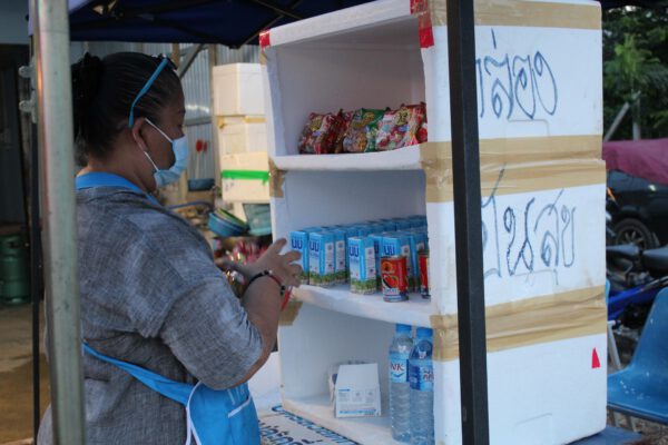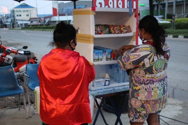 ตอนนั้นทราบว่าที่ตลาดด่านช้างมีตั้งตู้ปันสุข ตนก็จะเดินทางจากบ้านประมาณ 20กิโลเมตร เพื่อมาเอาอาหารและของใช้ในตู้ปันสุข ไปดูแลคนในครอบครัว จนเดือน กันยายน ปี63 ลุกขึ้นสู้เปิดร้านเป็นของตัวเอง ทำให้มีรายได้พออยู่ได้ ถึงไม่ได้ร่ำรวยแต่ก็ไม่ลำบากเหมือนเมื่อก่อน พอมีเหตุการณ์การระบาดโควิด-19 ระลอกใหม่นี้ ตนนึกถึงตัวเองตอนที่ได้รับการแบ่งปันจากตู้ปันสุขเมื่อปีที่แล้ว จึงได้ตั้งตู้ปันสุขไว้หน้าร้านเพื่อแบ่งปันให้กับสังคม หลังจากตั้งตู้ปันสุขก็มีกลุ่มเพื่อนค้าอาหารทะเลจากมหาชัยและชาวด่านช้างที่ทราบข่าว นำสิ่งของต่างๆมาร่วมแบ่งปันใส่ตู้ปันสุขตลอดทั้งวัน