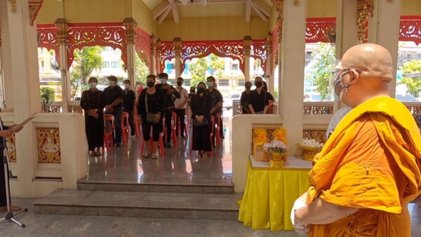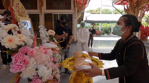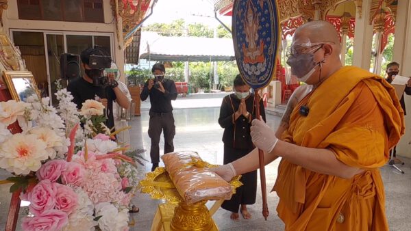 หลวงพี่น้ำฝนยังให้โอวาทแก่ญาติผู้เสียชีวิต ว่าโยมวันนี้ลูกๆทั้งสี่คนของคุณแม่จรุง ได้ทำให้สมบูรณ์แบบหมดแล้วถึงแม้จะเป็นเวลาที่สั้นก็จริง แต่ก็ต้องเข้าใจด้วยสถานการณ์ในตอนนี้ เพราะฉนั้นโยมเรายังมีชีวิตอยู่ที่ทำสิ่งดีๆอุทิศให้แม่สืบต่อไป เพราะสถานการณ์มันไม่เอื้ออำนวย ทุกสิ่งทุกอย่างต้องยอมจำนนเพราะพิษร้ายโรคติดเชื้อไวรัสโคโรนา โควิด-19 นั้นมันรุนแรงและน่ากลัวจริงๆมันสามารถฆ่าชีวิตมนุษย์ไปได้อย่างงายดายเหลือเกิน เพราะฉนั้นไม่รู้เลยว่าใครจะตกในที่นั่งแบบนั้น เพราะฉนั้นถือว่าลูกๆทุกคนทำได้ดีแล้ว ขอบุญกุศลนั้นจงส่งผลแก่คุณแม่จรุงให้ได้รับผลบุญผลกุศลที่พวกท่านทั้งหลายมีความกตัญญูกตเวที ถือว่าคุณแม่จรุงมีบุญแล้ว เพราะคนอื่นบางคนไม่มีโอกาสมาเผาศพได้ แต่พวกโยมมากันได้ครบ ถึงแม้จะไม่เห็นหน้า ขอเป็นกำลังใจให้โยมทุกคน