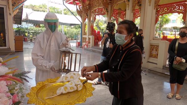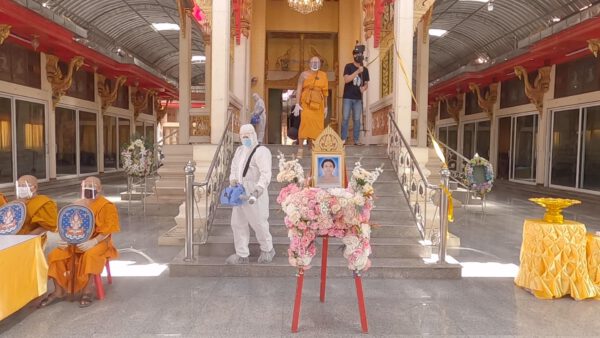 หลวงพี่น้ำฝน กล่าวว่าวันนี้วัดไผ่ล้อมก็เหมือนเดิมที่เจ้าหน้าที่ของเราจะต้องพ่นฆ่าเชื้อทั่วบริเวณและน้ำยาฆ่าเชื้อนี้ไม่มีอันตราย ซึ่งวัดไผ่ล้อมเป็นศูนย์รวมและต้นแบบในการที่จะช่วยเหลือญาติโยม โดยกองทุนหลวงพ่อพูล วัดไผ่ล้อม ซึ่งไม่ต้องเสียค่าใช้จ่ายแม้แต่บาทเดียว ก็ได้รับข่าวหน้าเสียใจอีกวันหนึ่งเหมือนเดิมก็มีเจ้าหน้าที่โรงพยาบาลนครปฐมได้ติดต่อมา ว่ามีผู้เสียชีวิตจากโรค โควิด-19 มาฌาปนกิจที่วัดไผ่ล้อมของเราแห่งนี้โดยเฉพาะคุณโยมที่เสียชีวิตนั้นอายุ 71 ปีโดยมีลูกลูกหลานหลานซึ่งพักอาศัยอยู่แถวพุทธมณฑล. ซึ่งถือว่าเป็นศพรายที่ 19 ที่ฌาปนกิจที่วัดไผ่ล้อมแห่งนี้ซึ่งเหตุการณ์แบบนี้ไม่อยากจะทำพิธีเลยแต่มันก็เป็นไปไม่ได้ก็มีแต่ว่าจะต้องช่วยกันในการที่จะประกอบพิธีฌาปนกิจ บำเพ็ญกุศลศพตามประเพณีที่เราควรจะปฏิบัติและลูกๆหลานๆก็จะได้มีโอกาสที่จะร่วมทำบุญ ไม่ได้เห็นหน้าแม่ผู้เสียชีวิต ไม่ได้มีการบอกกล่าวสั่งเสียทั้งสิ้นเพราะว่าเข้าไปเยี่ยมอะไรก็ไม่ได้อันนี้คือความเจ็บปวดความเจ็บช้ำที่สุดไม่มีโอกาสได้สั่งเสียไม่มีโอกาส ได้สั่งลา นี่คือความเจ็บปวดทุกท่านที่มาร่วมงานก็ร้องไห้อาตมาเห็นแล้วก็ได้แต่ให้กำลังใจในการดำเนินชีวิตต่อไป ซึ่งไม่มีโอกาสจะได้เห็นหน้าอะไรกันเลยเห็นแต่รูป และเมื่อรถขนศพได้เคลื่อนเข้ามาลูกๆก็ร้องไห้ปิ่มจะขาดใจเรียกแม่จนบางคนถึงกับเป็นลมล้มพับเลย เป็นภาพที่น่าหดหู่ใจแก่ผู้พบเห็น จนน้ำตาซึมเสียใจไปกับครอบครัวของผู้สูญเสีย ซึ่งพิษร้ายของโรคโควิด-19ทำให้ พ่อ แม่ต้องจากลูก ลูกต้องจากพ่อแม่ พี่ต้องจากน้อง อย่างที่ไม่มีโอกาสได้ใก้ลชิด พบหน้ากันเป็นครั้งสุดท้ายเลย