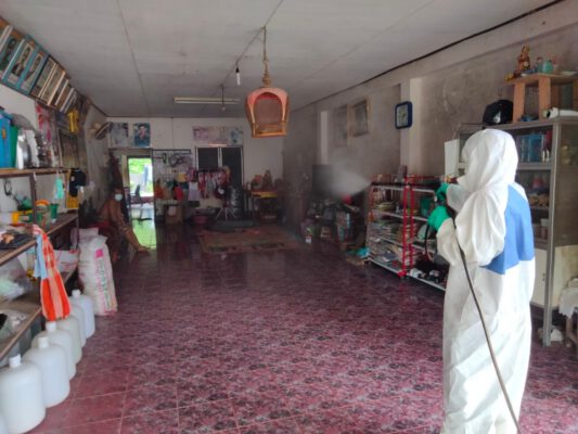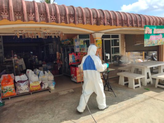 องค์การบริหารส่วนจังหวัดตรัง ร่วมด้วยช่วยป้องกันโควิด-19 โดยการฉีดพ่นน้ำยาฆ่าเชื้อโควิด-19 ที่บ้านเรือน ร้านค้า สถานที่ชุมชนในพื้นที่มีความเสี่ยงสูง