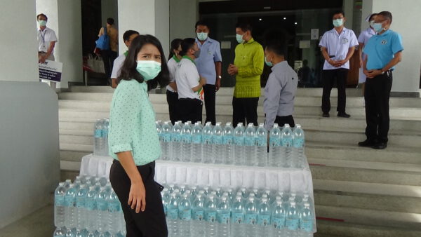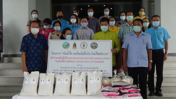ที่บริเวณหน้าศาลากลางจังหวัดตรัง นายขจรศักดิ์ เจริญโสภา ผู้ว่าราชการจังหวัดตรัง เป็นประธานรับมอบถุงปันน้ำใจ ประกอบด้วยเครื่องอุปโภค บริโภค ข้าวสาร น้ำมัน น้ำปลา และปลากระป๋อง น้ำจำนวน 70 ชุด เพื่อนำไปแจกจ่ายให้แก่ผู้ได้รับผลกระทบจากภัย COVID-19 จาก สำนักงานวัฒนธรรมจังหวัดตรัง น้ำดื่มจาก ห.จ.ก.พลังสรณ์ (ปั้มน้ำมันบางจาก) สาขา 3-4 จำนวน 1,200 ขวด และการไฟฟ้าฝ่ายผลิตแห่งประเทศไทย (กฟผ. ) ร่วมกับบริษัทในเครือ โดยนายผล ขวัญนุ้ย ผู้อำนวยการฝ่ายปฏิบัติการภาคใต้ (อปต. ) นายชินกฤช อุตะปะละ หัวหน้ากองบริหาร (กบหน-ส) และ นายนรินทร์ พลายด้วง หัวหน้าสำนักงานลำภูรา เป็นตัวแทนมอบเงินสนับสนุนเพื่อจัดหาอุปกรณ์ทางการแพทย์เพื่อใช้ป้องกันการแพร่ระบาดของไวรัสโควิค 19 โดยส่งมอบงบประมาณสนับสนุนให้แก่โรงพยาบาลตรัง จำนวน 400,000 บาท โรงพยาบาลห้วยยอด จำนวน 100,000 บาท และโรงพยาบาลรัษฎา 100,000 บาท และกลุ่มปตท.มอบเครื่องช่วยหายใจ มูลค่ากว่า 2 ล้าน 4 แสนบาทให้ รพ.ตรัง ทั้งนี้ภาคเอกชนและภาครัฐ ต่างยื่นมือให้ความช่วยเหลือโดยการบริจาคสิ่งของ เนื่องจากสิ่งของ เครื่องใช้ในโรงพยาบาลสนาม รวมถึงร่วมบริจาคอุปกรณ์การแพทย์ เพื่อนำไปมอบให้กับแพทย์ พยาบาล ผู้ปฏิบัติงานเฝ้าระวังและป้องกันการแพร่ระบาดของโรคติดเชื้อไวรัสโคโรนา 2019 (โควิด-19) ในพื้นที่จังหวัดตรัง