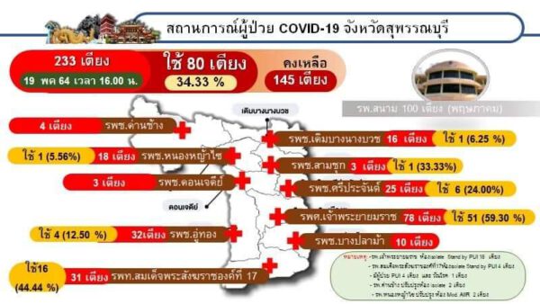 คณะกรรมการโรคติดต่อสุพรรณบุรี แจ้งจำนวนเตียงรองรับผู้ป่วย COVID-19 โรงพยาบาลสนามและ Hospitel และสถานการณ์การติดเชื้อ COVID-19