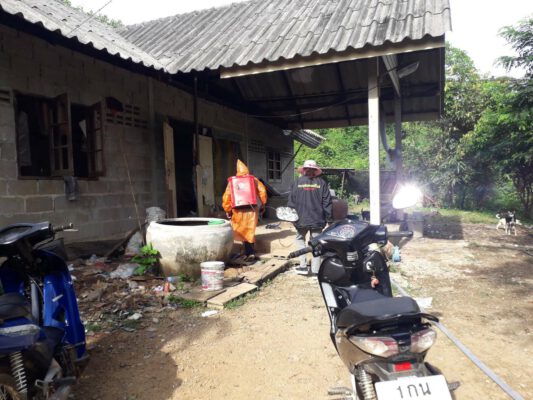 วันที่ 20 พฤษภาคม 2564 เวลา 14.00 น. ศูนย์ตอบโต้ภัยพิบัติจังหวัดราชบุรี ได้รับการร้องขอจากชาวบ้านในพื้นที่ ให้ลงพื้นที่ฉีดยาฆ่าเชื้อโควิค19 ในพื้นที่ซอยพุกระถิน ม.8 บ้านลานคา ตำบลยางหัก อำเภอปากท่อ จังหวัดราชบุรี ศูนย์ตอบโต้ภัยพิบัติจังหวัดราชบุรีได้ส่งเจ้าหน้าที่ลงพื้นที่พ่นยาฆ่าเชื้อพร้อมกับเจ้าหน้าที่อสม.ในเขตพื้นที่รับผิดชอบพ่นยาฆ่าเชื้อ ตามบ้านเรือนของชาวบ้านเพื่อเป็นการป้องกันการแพร่ระบาดของเชื้อโควิค19