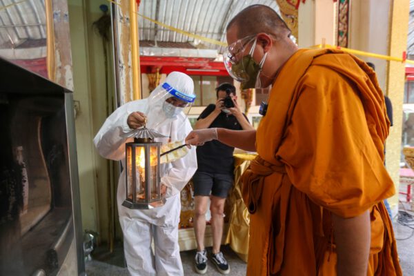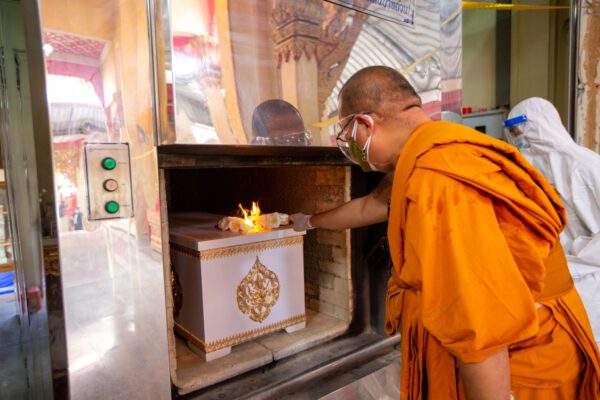 เผาสาวก่อสร้าง วัย 29 ปี ติดเชื้อโควิด-19 ลงปอดนอนดับเสียชีวิตโรงพยาบาลนครปฐม หลวงพี่น้ำฝน รับดำเนินการสวดเผาฟรี บอกน่าอนาถใจ พ่อป่วยเป็นมะเร็งอยู่เชียงราย แม่อยู่พื้นที่สีแดง มาไม่ได้ ไม่มีนายจ้างเพื่อนร่วมงานมางาน จัดเจ้าหน้าที่เป็นประธานเผาร่วมปัจจัย ทำพิธีส่งดวงวิญญาณกลับสู่ภพภูมิครบกระบวนการอย่างเดียวดาย