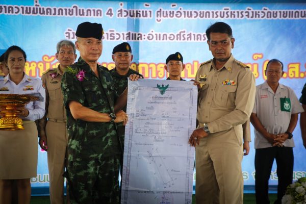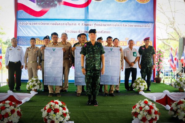 วันที่ 9 พฤษภาคม 2561 เวลา 13.30 น. ที่ สนามกีฬาโรงเรียนชุมชนบ้านซากอ ตำบลซากอ อำเภอศรีสาคร จังหวัดนราธิวาส พล.ท.ปิยวัฒน์ นาควานิช แม่ทัพภาคที่ 4 เป็นประธานมอบหนังสือรับรองการทำประโยชน์ในที่ดินตามโครงการวันนี้ ที่รอคอย 542 อำเภอศรีสาครเพื่อแก้ไขปัญหาความเดือดร้อนด้านที่ทำกินให้แก่พี่น้องประชาชน โดยมี นายศุภณัฐ สิรันทวิเนติ เลขาธิการศูนย์อำนวยการบริหารจังหวัดชายแดนภาคใต้ (ศอ.บต.) นายสุรพร พร้อมมูล ผู้ว่าราชการจังหวัดนราธิวาส นายกริช น้อยผา นายอำเภอศรีสาคร จังหวัดนราธิวาส หัวหน้าส่วนราชการ ข้าราชการ เจ้าหน้าที่ที่เกี่ยวข้อง ตลอดจนประชาชนในพื้นที่เข้าร่วม