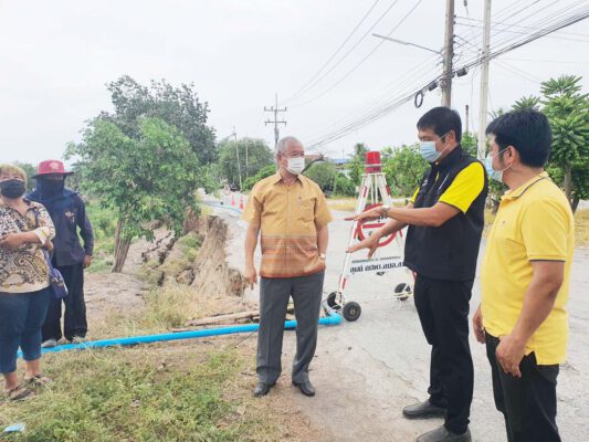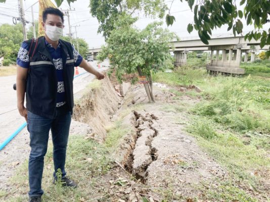 กรณีชาวบ้านที่ใช้ถนนเข้าหมู่บ้านเลียบคลองชลประทาน บ้านทรงกระเทียม หมู่ 4 ต.สาลี อ.บางปลาม้า จ.สุพรรณบุรี ร้องเรียนว่าถนนลาดยางด้านฝั่งคลองชลประทาน เกิดทรุดตัวลึกลงไปประมาณ 2 เมตร ต่อมานายวิชัย ภูมิวัฒนาชัย(สจ.ช้าง)สจ.เขต อ.บางปลาม้า ลงพื้นที่ตรวจสอบพบว่าถนนทรุดตัวลงไปกว่า2 เมตร เป็นระยะทางประมาณ 50 เมตร ทำให้ประชาชนสัญจรไปมาอย่างทุกลักทุเล สาเหตุเกิดจากระดับน้ำในคลองลดลงอย่างรวดเร็ว เนื่องจากกรมชลประทานไม่สามารถปล่อยน้ำให้เกษตรกรทำนาได้เพียงพอ เมื่อไม่มีน้ำปล่อยลงมาตามระบบชลประทาน ชาวนาจึงสูบน้ำที่มีอยู่ในลำคลองจนแห้งถึงท้องคลอง จึงทำให้ ถนนเกิดการทรุดตัว