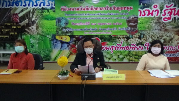 ที่ห้องประชุมสำนักงานเกษตรจังหวัดตรัง นายวสันต์ สุขสุวรรณ เกษตรจังหวัดตรัง เป็นประธานในพิธีทำบันทึกข้อตกลงการขอรับรับเงินอุดหนุน โครงการยกระดับแปลงใหญ่ด้วยเกษตรสมัยใหม่และเชื่อมโยงตลาด จังหวัดตรัง งบอุดหนุน(งบประมาณรายจ่ายประจำปีงบประมาณ พ.ศ.2564 เงินกู้)ตามมติคณะรัฐมนตรี เมื่อวันที่ 15 กันยายน 2563 รับทราบและอนุมัติตามผลการพิจารณาของคณะกรรมการกลั่นกรองการใช้จ่ายเงินกู้ โดยให้รับฟังความเห็นของสำนักงบประมาณและสำนักงานสภาพัฒนาการเศรษฐกิจและสังคมแห่งชาติไปดำเนินการในส่วนที่เกี่ยวจ้อง โดยให้ดำเนินการให้ถูกต้องเป็นไปตามขั้นตอนของกฎหมาย ระเบียบ และมติคณะรัฐมนตรีที่เกี่ยวข้องอย่างเคร่งครัด และกำหนดแนวทางการดำเนินงานและการกำกับดูแลให้เป็นไปตามวัตถุประสงค์ของโครงการอย่างชัดเจนและมีประสิทธิภาพ โดยจังหวัดตรังได้รับอนุมัติให้ดำเนินงานโครงการฯ ในพื้นที่ทุกอำเภอ จำนวน 49 แปลง งบประมาณทั้งสิ้น 129,578,700 บาท และผลการประชุมคณะกรรมการบริหารโครงการยกระดับแปลงใหญ่ด้วยเกษตรสมัยใหม่ระดับจังหวัดครั้งที่ 1/2564 จังหวัดตรังได้ให้กลุ่มแปลงใหญ่ไปทบทวนการเข้าร่วมโครงการฯ และแผนการดำเนินงาน/แผนการใช้จ่ายเงิน และผ่านความเห็นชอบผ่านคณะกรรมการบริหารโครงการฯ ระดับอำเภอ และผ่านการพิจารณาจากคณะกรรมการบริหารโครงการฯ ระดับจังหวัด เห็นชอบอนุมัติทั้ง 16 โครงการ ตามเงินงบประมาณ พ.ศ.2564 เงินกู้ โครงการยกระดับแปลงใหญ่ด้วยเกษตรสมัยใหม่และเชื่อมโยงการตลาด เป็นเงินจำนวน 46,248,884 บาท ประกอบด้วยเจ้าของสินค้า 3 หน่วยงานที่รับผิดชอบ คือ กรมส่งเสริมการเกษตร โดยสำนักงานเกษตรจังหวัดตรัง จำนวน 9 แปลง กรมการข้าวโดยศูนย์เมล็ดพันธุ์ข้าวพัทลุง จำนวน 5 แปลง และการยางแหงประเทศไทย โดยการยางแห่งประเทศไทยจังหวัดตรัง จำนวน 4 แปลง โดยให้แต่ละหน่วยงานเสนอแผนการดำเนินงานและแผนการใช้จ่ายงบประมาณ ของกลุ่มแปลงใหญ่ ขอรับการจัดสรรงบประมาณจากหน่วยงานที่เป็นเจ้าของสินค้าแปลงใหญ่ระดับกรม และหน่วยงานที่เป็นเจ้าของสินค้าแปลงใหญ่ระดับกรม จัดสรรงบประมาณตามแผนการดำเนินงานและแผนการใช้จ่ายงบประมาณให้หน่วยงานที่เป็นเจ้าของสินค้าแปลงใหญ่ในพื้นที่ และให้หน่วยงานที่เป็นเจ้าของสินค้าแปลงใหญ่ในพื้นที่จัดทำบันทึกข้อตกลง ใบเสร็จรับเงินกับกลุ่มแปลงใหญ่ พ้อมหนังสือถึง ธ.ก.ส.และโอนเงินให้กลุ่มแปลงใหญ่ สำหรับสำนักงานเกษตรจังหวัดตรัง มีหน้าที่รับผิดชอบแปลงใหญ่ ปาล์มน้ำมัน ผึ้ง ฝรั่ง จำนวน 9 กลุ่ม งบประมาณ26,716,441 บาท เช่น อำเภอเมืองตรัง จำนน 1 แปลง คือ แป