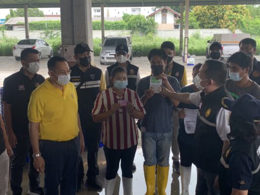 วันที่ 28 พ.ค.64 พลตำรวจตรี นันทชาติ ศุภมงคล ที่ปรึกษาประจำสำนักนายกรัฐมนตรีประจำกระทรวงแรงงาน พร้อมด้วย นาย อภินันท์ เผือกผ่อง รองผู้ว่าราชการจังหวัดนครปฐม นางอัธยา อ่ำหนองโพ จัดหางานจังหวัดนครปฐม นายอนุชา ใจช่วงโชติ นายอำเภอบางเลน และชุดปฏิบัติการกระทรวงแรงงาน ลงพื้นที่ตลาดแพปลาบางเลนพัฒนาการประมง ตลาดแพปลาบางเลน อำเภอบางเลนจังหวัดนครปฐม ตรวจสอบพบแรงงานต่างด้าวที่เข้าทำงานในตลาดแพปลาที่หลบหนีเข้าเมืองและลักลอบทำงานอย่างผิดกฎหมาย จำนวน 11 ราย