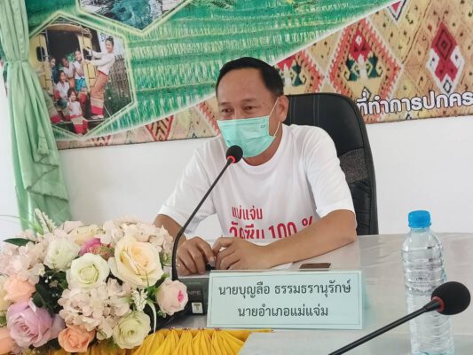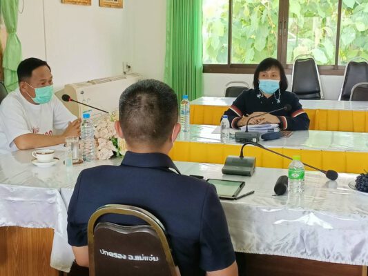 วันที่ 28 พฤษภาคม 2564 อำเภอแม่แจ่ม โดยนายบุญลือ ธรรมธรานุรักษ์ นายอำเภอแม่แจ่ม พร้อมด้วยนางเสาวลักษณ์ ไชยเมือง พัฒนาการอำเภอแม่แจ่ม และเจ้าหน้าที่พัฒนาชุมชนอำเภอแม่แจ่ม ร่วมกับ พ.อ.จิรายุ จิตธรรม ผู้บังคับหน่วยพัฒนาการเคลื่อนที่ 32 พ.อ.ธเนษ ภัทรวรรณ รองผู้บังคับหน่วยพัฒนาการเคลื่อนที่ 32 ร.ท.อนุรักษ์ วิรัตน์พฤกษ์ หัวหน้าชุดปฏิบัติงานช่าง และนายทหารยุทธการและการข่าวหน่วยพัฒนาการเคลื่อนที่ 32 ร่วมหารือแนวทางการดำเนินงานโครงการพัฒนาพื้นที่ต้นแบบการพัฒนาคุณภาพชีวิตตามหลักทฤษฎีใหม่ ประยุกต์สู่ “โคก หนอง นา พัฒนาชุมชน” กิจกรรมที่ 2 การพัฒนาพื้นที่เรียนรู้ชุมชนต้นแบบการพัฒนาคุณภาพชีวิต(Community Lab Model for quality of life : CLM) ระดับตำบล ซึ่งเป็นกิจกรรมบูรณาการร่วมกันระหว่างกรมการพัฒนาชุมชน และกองทัพไทย ซึ่งพื้นที่อำเภอแม่แจ่มจังหวัดเชียงใหม่ มีจำนวน 7 แห่ง 7 ตำบล ดำเนินการไปแล้ว 1 แห่ง คือ ศูนย์ตำบลแม่นาจร บ้านห้วยขมิ้น ในการนี้ ได้ลงพื้นที่เพื่อ ดำเนินการอีก จำนวน 2 แห่ง ได้แก่ พื้นที่ศูนย์เรียนรู้ต้นแบบฯตำบลแม่ศึกและตำบลปางหินฝน จำนวนพื้นที่ 15 ไร่ โดยมีนายสุพจน์ เมฆสวรรค์บำรุง ประธานศูนย์ฯตำบลแม่ศึกและนายสมชาย ยิ่งสันติวงค์ ประธานศูนย์ฯ ตำบลปางหินฝน เข้าร่วมวางแผนในการดำเนินกิจกรรมและรายงานสภาพปัญหาในการเข้าไปดำเนินงานในพื้นที่ ในครั้งนี้ เพื่อร่วมกันหาทางออกร่วมกันให้โครงการดำเนินการไปด้วยความเรียบร้อยตรงตามระเบียบและบรรลุวัตถุประสงค์ ของโครงการฯ