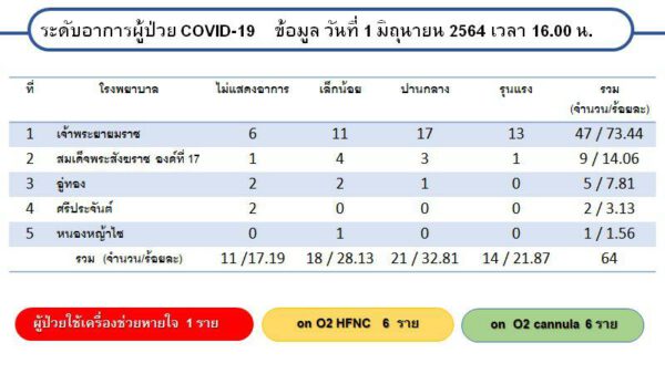 - ระดับ อาการเล็กน้อย จำนวน 18 คน คิดเป็นร้อยละ 28.13 ของผู้ป่วยทั้งหมด
