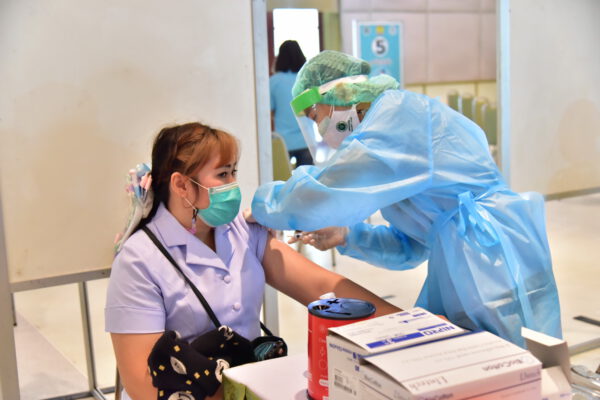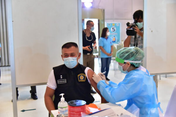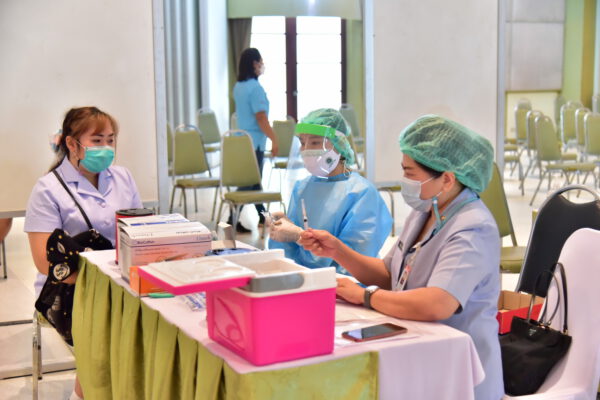 วันที่ 2 มิถุนายน 2564 ที่อาคารคอนเวนชั่น มหาวิทยาลัยเกษตรศาสตร์ วิทยาเขตกำแพงแสน จังหวัดนครปฐม นายรัฐศาสตร์ ชิดชู รองผู้ว่าราชการจังหวัดนครปฐมพร้อมด้วย นายแพทย์ณัฏคเณศ คงคาเพชร รองผู้อำนวยการโรงพยาบาลกำพงแสนรองศาสตราจารย์ ดร.ต่อศักดิ์ แก้วจรัสวิไล ผู้ช่วยอธิการบดีฝ่ายกิจการนิสิตกีฬา และทำนุบำรุงศิลปวัฒนธรรม มหาวิทยาลัยเกษตรศาสตร์ นายอำเภอกำแพงแสนประชาสัมพันธ์จังหวัด จ่าจังหวัด และส่วนราชการที่เกี่ยวข้อง ร่วมตรวจสถานที่ให้บริการฉีดวัคซีนป้องกันโรคติดเชื้อไวรัสโควิด-19 โดยในวันนี้ได้เริ่มทดลองฉีดจริงให้กับเจ้าหน้าที่กลุ่มเสี่ยง เพื่อเตรียมความพร้อมในการให้บริการฉีดวัคซีนให้กับกลุ่มประชาชนทั่วไป ในวันที่ 7 มิถุนายน 2564 นี้ มีเป้าหมายการดำเนินการวันละ 1,000 คน/วัน