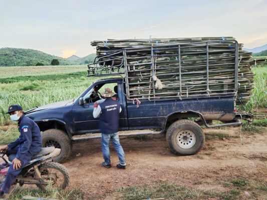 จากการตรวจสอบ พบกลุ่มคน จำนวน20คน กำลังลักลอบตัดไม้ไผ่ในป่าชุมชน เขตป่าสงวน เจ้าหน้าที่จึงได้ตรวจสอบเอกสารบัตรประชาชน พบว่าไม่มีเอกสารแสดงบุคคลต่างด้าวจำนวน 18ราย คนไทย 2 ราย จึงได้ทำการจับกุมกลุ่มคนทั้งหมด เบื้องต้นแจ้งข้อหา ผิด พรบ.ป่าไม้ และข้อหา พรบ.หลบหนีเข้าเมือง และดำเนินคดีตามกฎหมายต่อไป