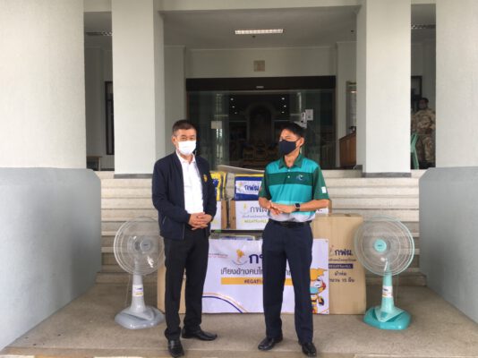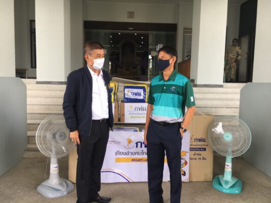 ที่ศาลากลางจังหวัดตรัง. นายผล ขวัญนุ้ย ผู้อำนวยการฝ่ายปฏิบัติการภาคใต้ กฟผ. พร้อมด้วยนายนรินทร์ พลายด้วง หัวหน้าสำนักงาน กฟผ. ลำภูรา ร่วมส่งมอบผ้าห่มจำนวน 60 ผืน พัดลม 25 ตัว หน้ากาก 100 กล่อง โดยมีนายขจรศักดิ์ เจริญโสภา ผู้ว่าราชการฯจังหวัดตรัง เป็นตัวแทนรับมอบ โดยของบริจาคทั้งหมดได้จัดส่ง เพื่อใช้ในการดูแลผู้ป่วย ที่โรงพยาบาลสนามแห่งที่ 5 มหาวิทยาลัยการกีฬาแห่งชาติ วิทยาเขตตรัง ต.ทุ่งค่าย อ.ย่านตาขาว จ.ตรัง