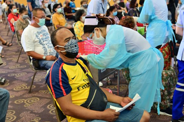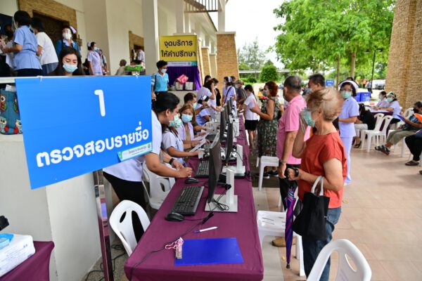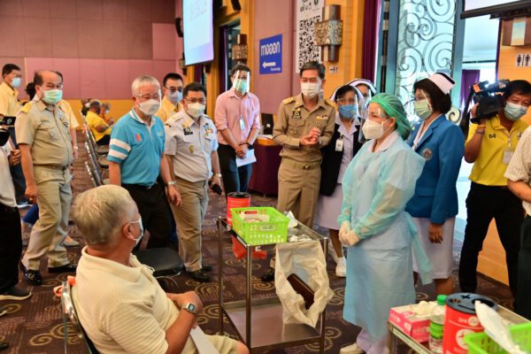 วันที่ 7 มิถุนายน 2564 บรรยากาศการฉีดวัคซีนต้านโควิด 19 ให้กับประชาชนเป็นวันแรก ที่หอประชุมอาคารปฐมสัมมาคาร อุทยานการอาชีพชัยพัฒนา ตำบลบ่อพลับ อำเภอเมือง จังหวัดนครปฐม มีประชาชนกว่า 1,000 คน เดินทางมาเข้ารับการฉีดวัคซีน ตามที่ได้ลงทะเบียนไว้ในระบบผ่านช่องทางต่างๆ โดยมีเจ้าหน้าที่และประชาชนจิตอาสาร่วมอำนวยความสะดวกให้กับประชาชนและผู้สูงอายุ ซึ่งผู้ที่จะรับวัคซีนต้องกรอกแบบคัดกรองและใบยินยอมรับบริการวัคซีนโควิด 19 อีกทั้งต้องมีค่าความดันไม่สูงกว่าเกณฑ์มาตรฐาน และผ่านการวินิจฉัยประเมินอาการจากแพทย์โดยละเอียด